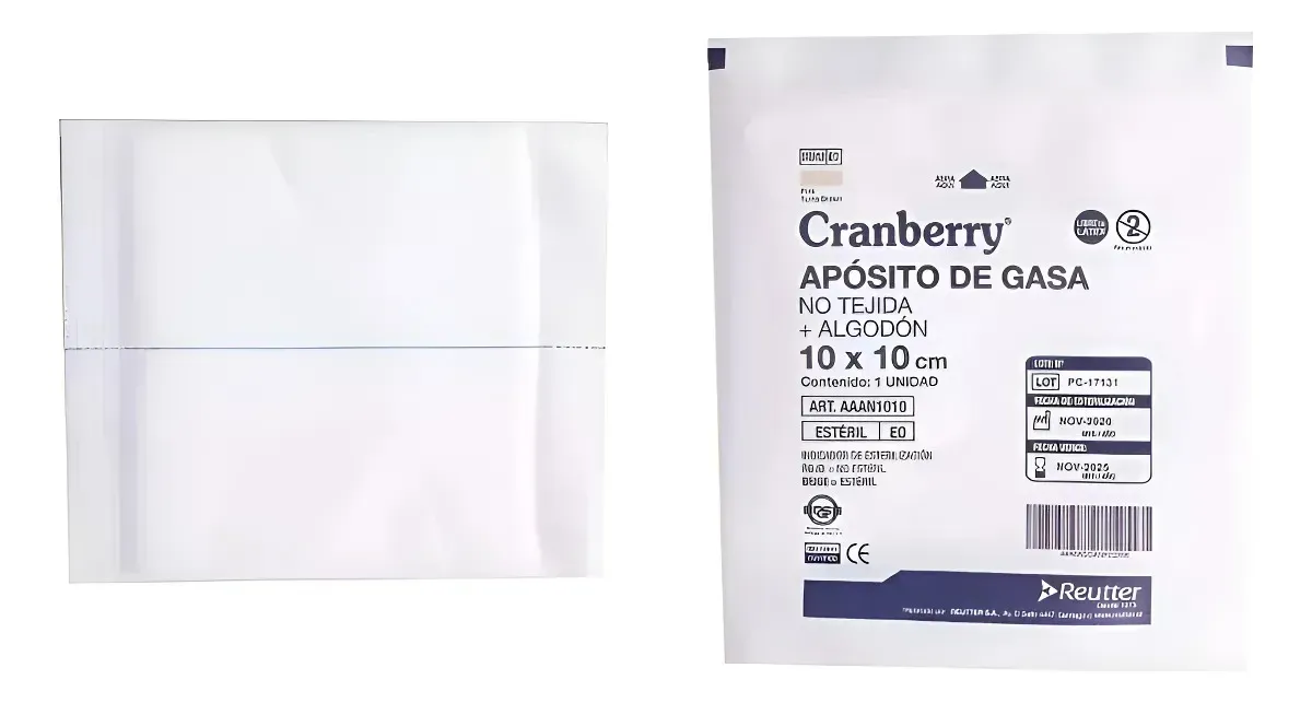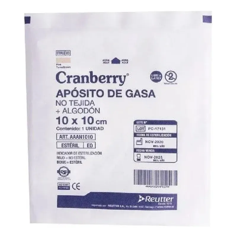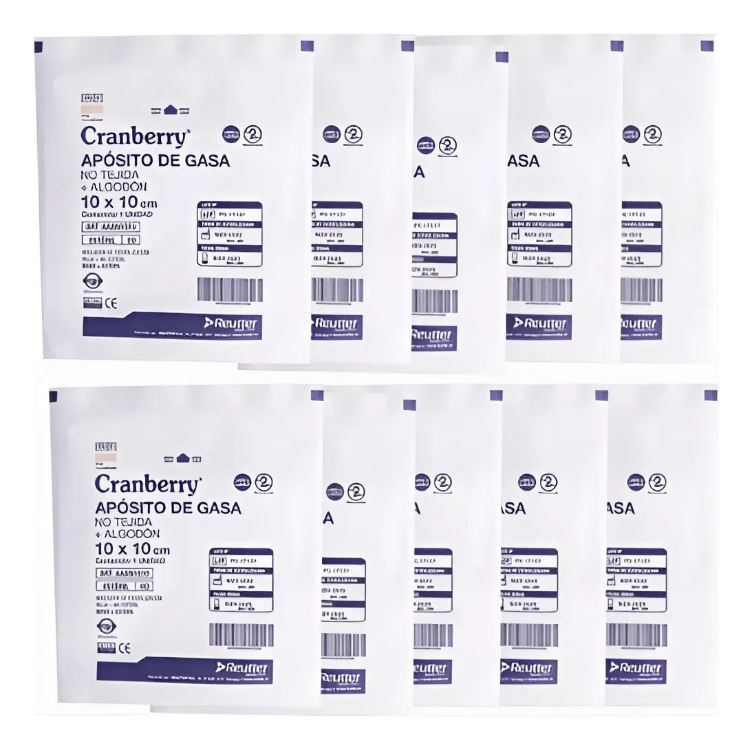 APÓSITO DE GASA NO TEJIDA 10X10CM (ALGODÓN) – ESTÉRIL – PACK 10 UNIDADES CRANBERRY