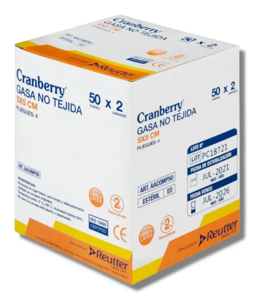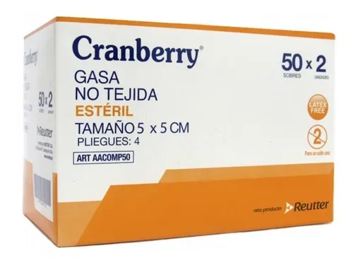 Especificación: GASA ESTÉRIL 5X5 CAJA 50 UNIDADES CRANBERRY