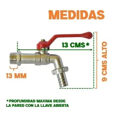 Cuenta con una entrada de agua con hilo exterior de 1/2″ y salida para manguera de 1/2″ con hilo exterior de 1″, permitiendo su uso con diversos accesorios.