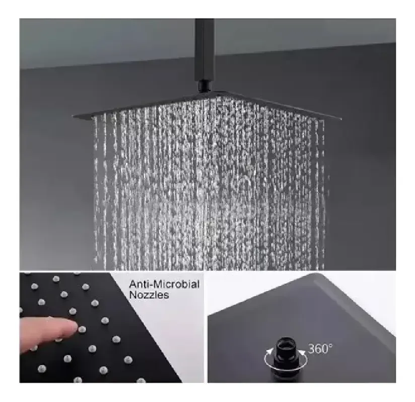 Plato Ducha Cuadrado Acero Inoxidable 25 Cm Negro Sin Brazo