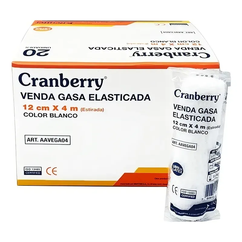 Especificación: VENDA GASA ELASTICADA 12CM X 4M BLANCO CRANBERRY 20 UNIDADES